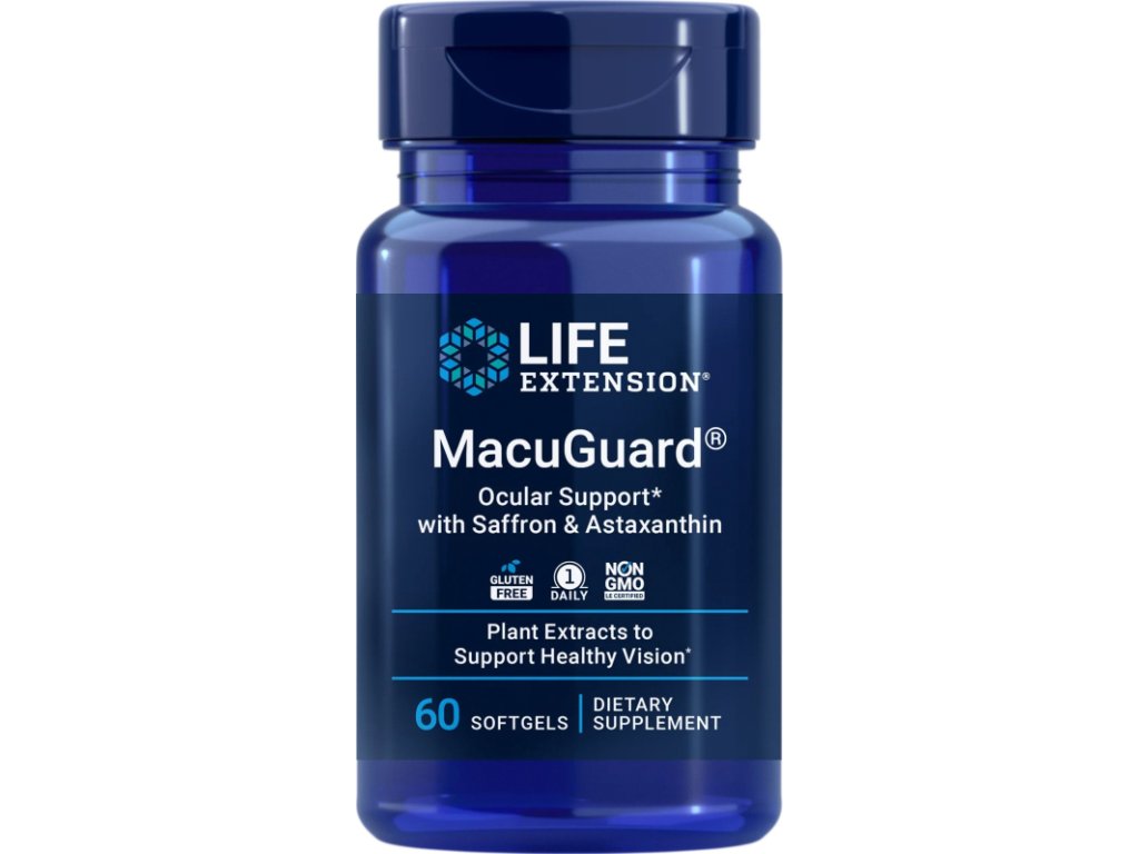 MacuGuard® Ocular Support s astaxanthinem může pomoci chránit vaše oči po mnoho let tím, že jim poskytne důležité živiny, které jsou často těžko dostupné. Tento komplexní doplněk obsahuje lutein, astaxanthin, zeaxanthin, šafrán a další látky.