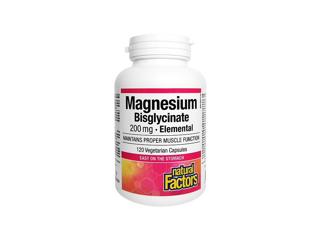 Natural Factors MAGNESIUM BISGLYCINÁT 200mg - hořčík 120 vegetariánských kapslí
