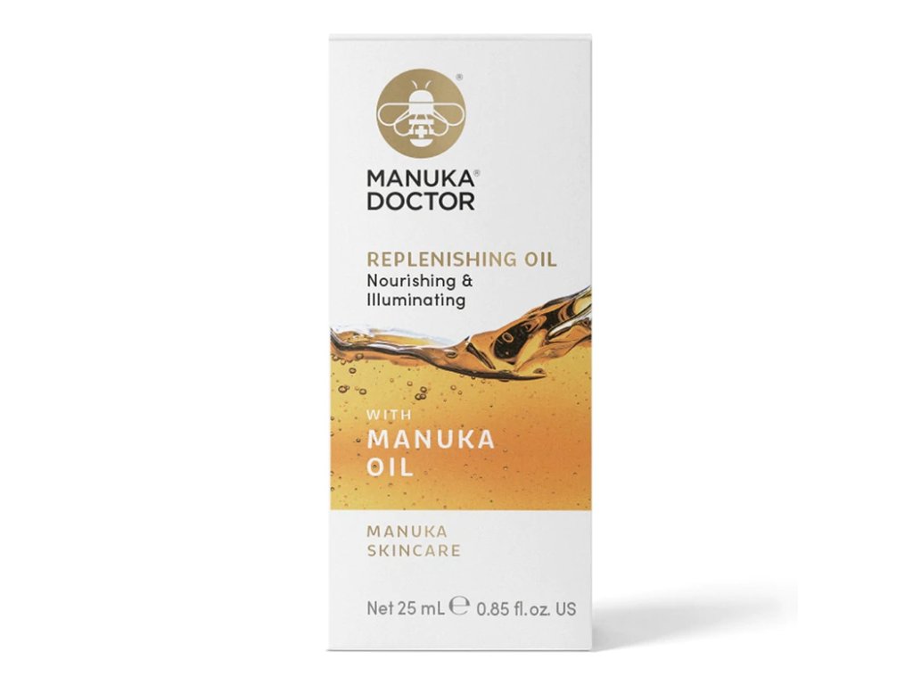 Dosáhněte jasnější, svěžejší a mladistvěji vypadající pleti s pleťovým olejem Mānuka Doctor Replenishing Facial Oil - obsahující účinnou složku manukový olej smíšený s oleji bohatými na omega mastné kyseliny; avokádo, hroznová semínka a šípky, s rozsáhlou sbírku dalších prospěšných olejů, které pomáhají znovu získat vláčnost a pružnost tím, že chrání hladinu vlhkosti a pomáhají předcházet vzniku jemných linek a vrásek.