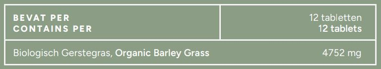Složení 99 % organická ječná tráva, 1 % oxid křemičitý.