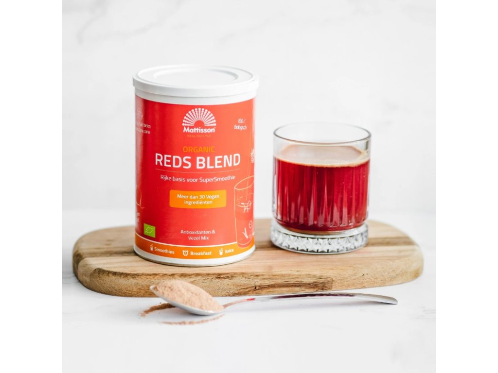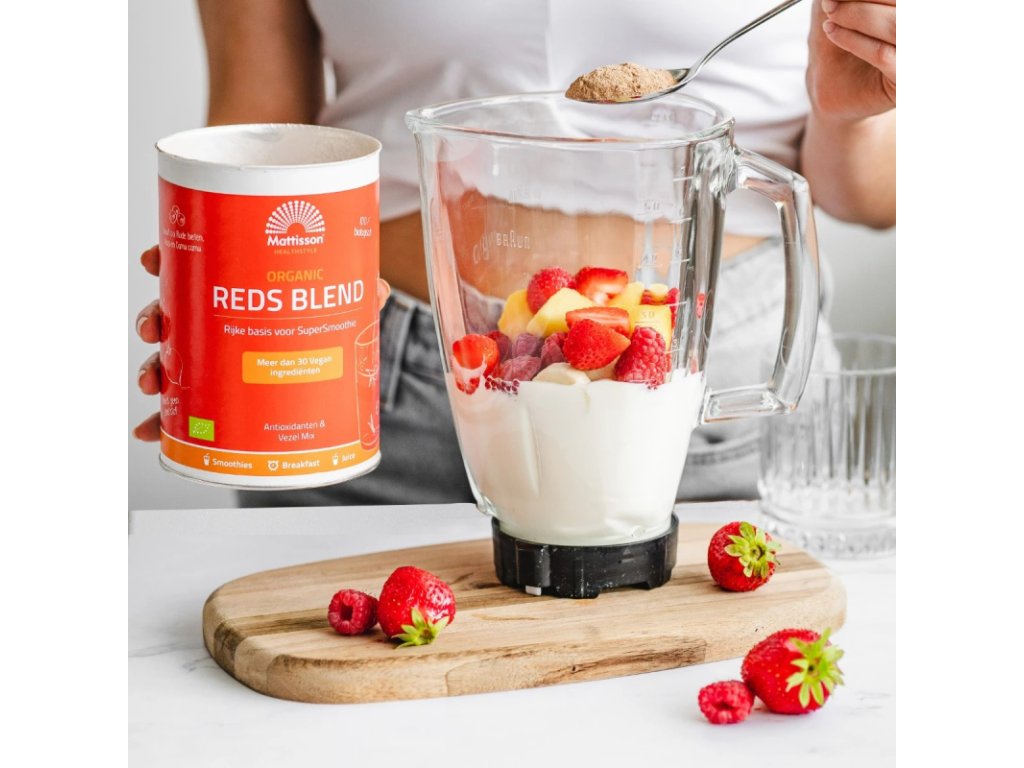 Směs Reds má jemnou bobulovo-zeleninovou příchuť a po rozmixování získá krásnou červenou barvu. Prášek můžete smíchat s vodou, stejně jako prostřednictvím ovocné šťávy nebo jogurtu. Nebo směs Reds přidejte do svého oblíbeného smoothie jako výživnou vzpruhu. Případná sedlina je normální.