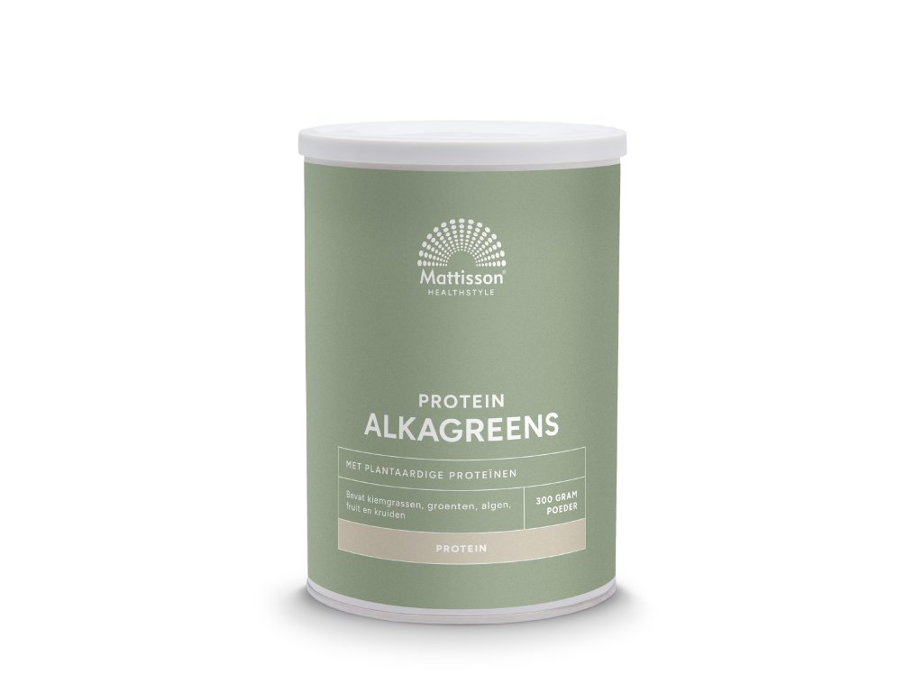 Prášek Protein AlkaGreens se skládá mimo jiné z klíčků obsahujících chlorofyl, rostlinných bílkovin, komplexu zeleniny a ovoce bohatého na vlákninu (VitaVeggieTM), komplexu bobulovin s vysokou hodnotou ORAC (VitaBerryTM), bylin, enzymů a prebiotické vlákniny. Rostlinné bílkoviny jsou vhodnou náhradou (živočišných) zdrojů bílkovin, jako jsou syrovátkové a sójové bílkoviny. Bílkoviny přispívají k budování, udržování a obnově svalů.