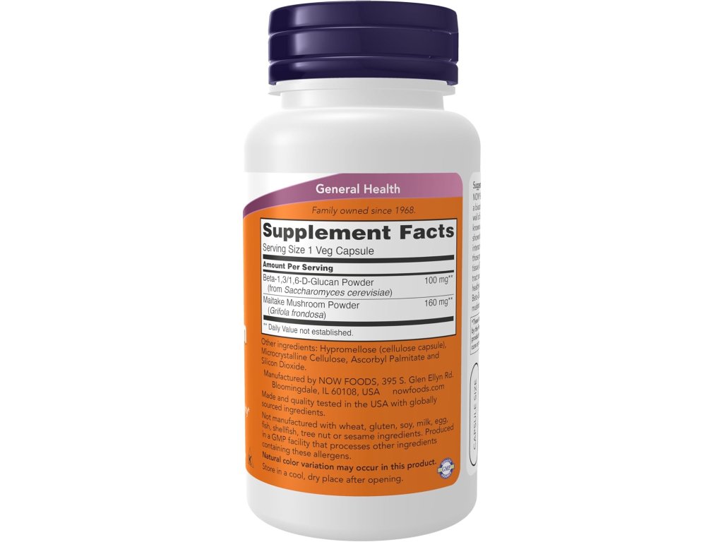 NOW® Beta-1,3/1,6-D-Glucan (beta-glukan) je bioaktivní sacharid získaný z buněčné stěny Saccharomyces cerevisiae (pekařské kvasnice). Studie ukazují, že beta-glukan z kvasnic může interagovat s určitými imunitními buňkami, včetně těch, které se nacházejí ve střevní lymfatické tkáni (GALT). GALT je součástí střevního traktu a hraje důležitou roli ve správné funkci imunitního systému. NOW® Beta-Glucan je doplněn o houby maitake pro doplňkovou podporu.