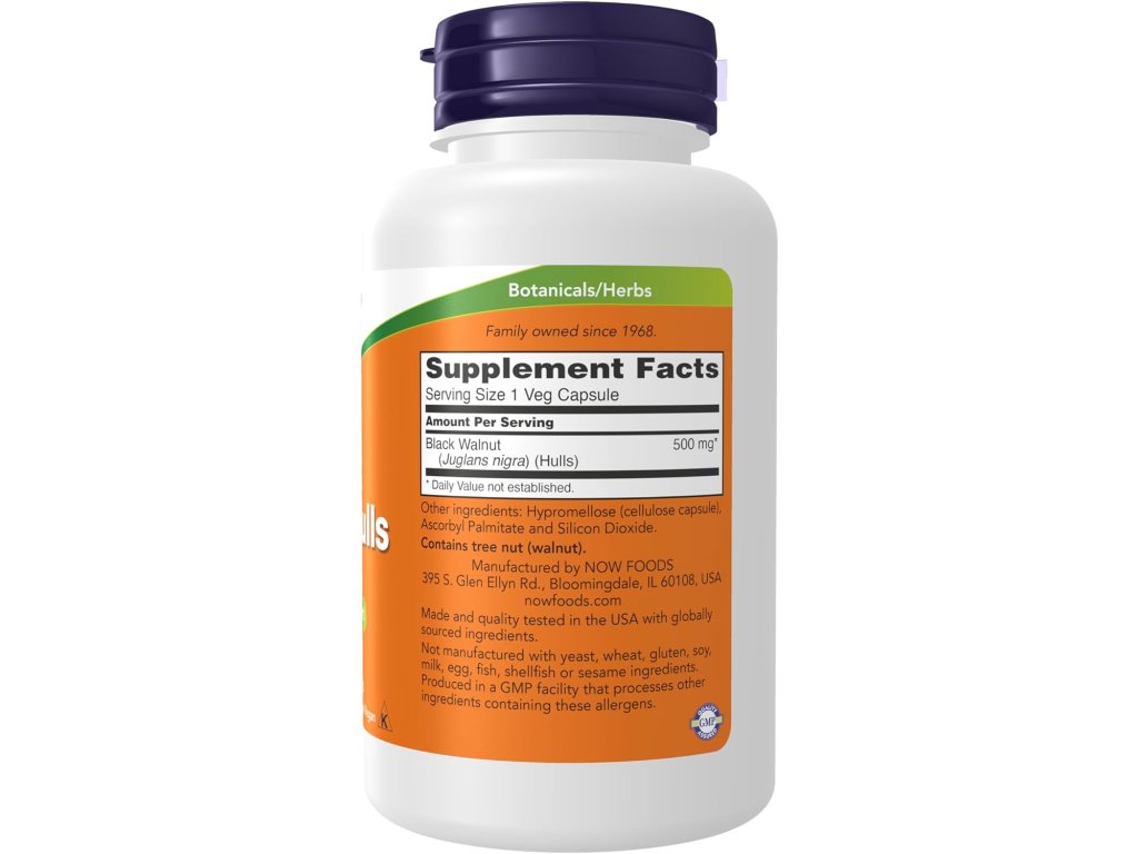 Now Foods, Black Walnut Hulls - černý ořech - slupky, 500 Mg, 100 Veg Capsules