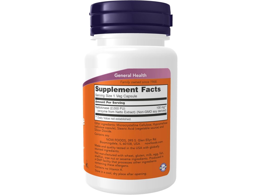 Nattokinase je enzym izolovaný z natta, tradiční japonské fermentované sójové potraviny. Natto se konzumuje po tisíce let pro své příznivé účinky. Moderní klinické i neklinické studie ukazují, že nattokinase může podporovat zdraví srdce a oběhového systému tím, že podporuje normální funkce srážení krve. NOW® Nattokinase je získán z non-GMO sóji a poskytuje 2 000 FU (fibrinolytických jednotek) na porci 100 mg.