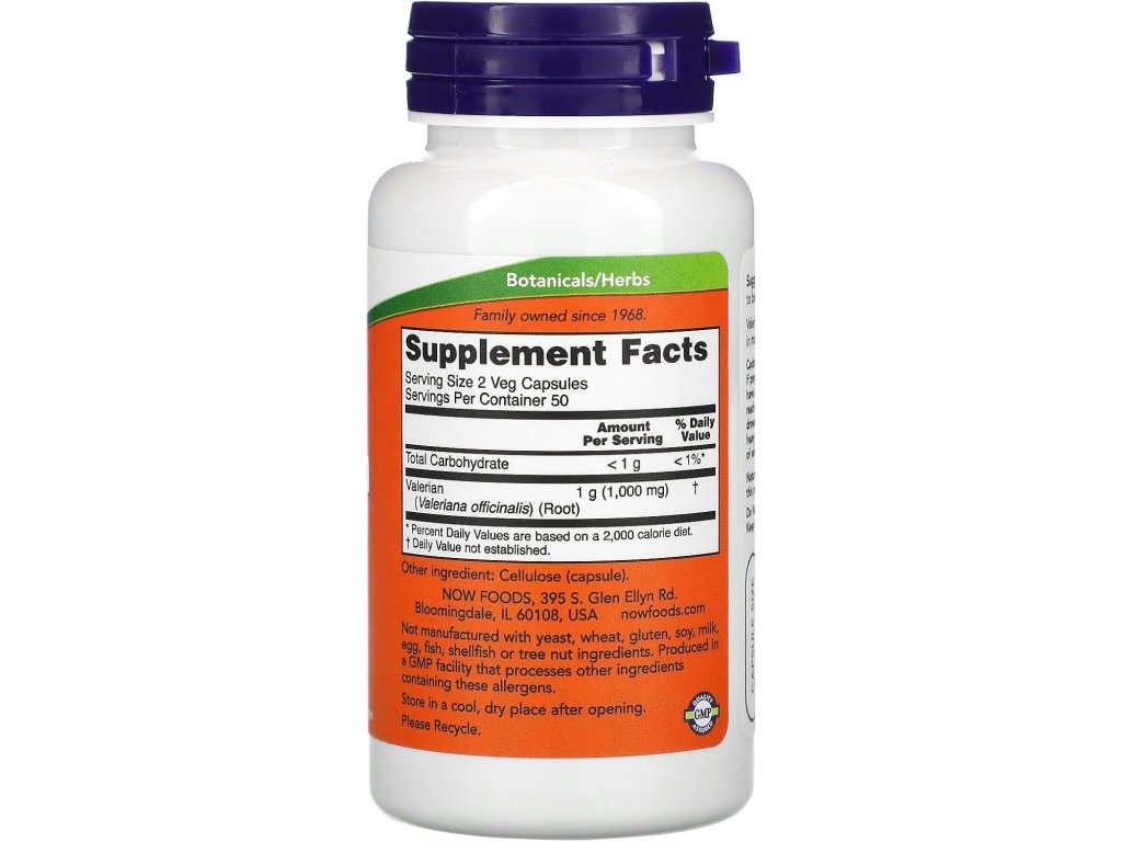 Kozlík lékařský - kořen NOW Foods 500 mg je tradiční bylinný doplněk stravy pro podporu relaxace a klidného spánku, v praktických veganských kapslích.