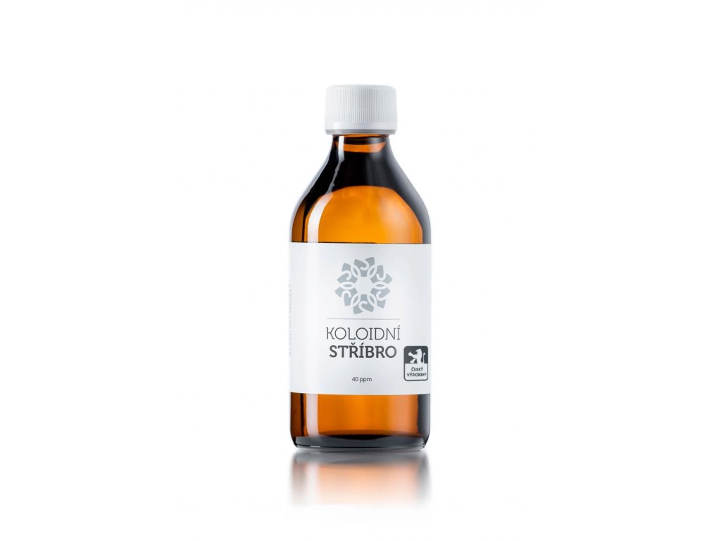 Czyste srebro koloidalne o jakości farmaceutycznej, stężenie 40 mg srebra na 1 kg wody.