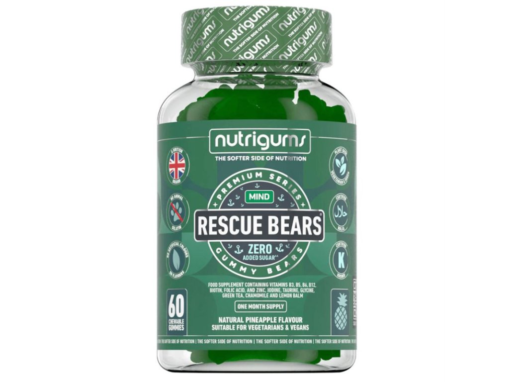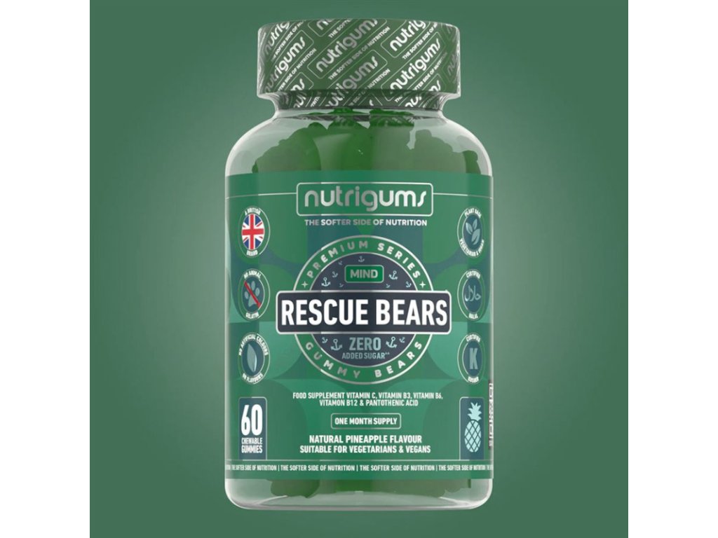 Nutrigums® Rescue Bears to żelki do żucia, które pomagają radzić sobie ze stresem, lękiem i nadmiernym obciążeniem psychicznym. Dzięki naturalnym ekstraktom z melisy, rumianku i zielonej herbaty, a także aminokwasom glicynie i taurynie, witaminom z grupy B, jodowi i cynkowi, wspierają prawidłowe funkcjonowanie układu nerwowego. Galaretki mają pyszny smak ananasa i nie zawierają sztucznych substancji słodzących ani barwników, co czyni je doskonałym wyborem dla wegetarian i wegan.