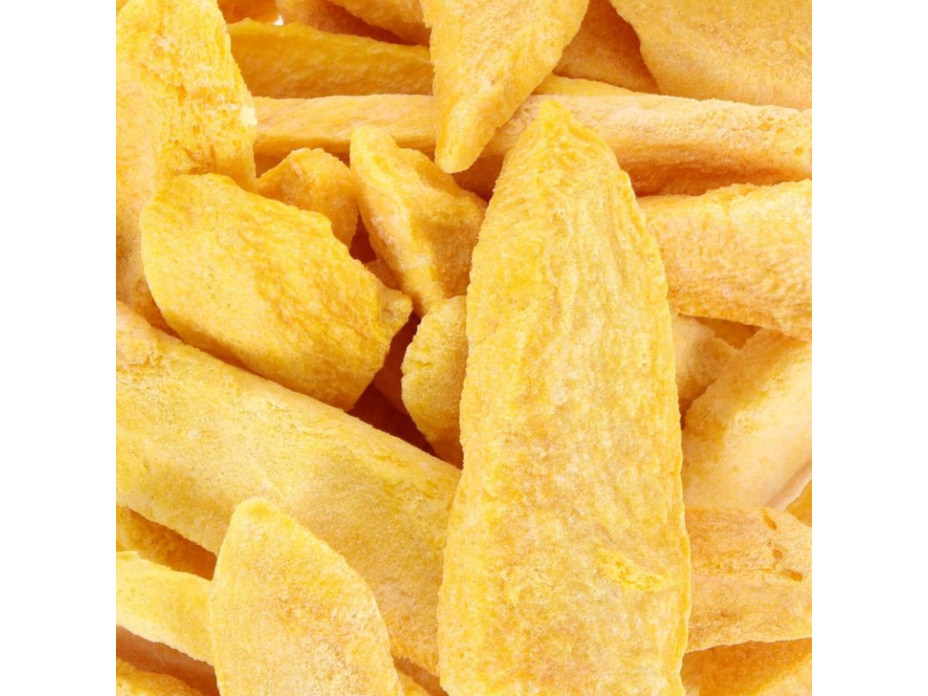 Do 100 g liofilizowanego mango użyto około 1500 g świeżego mango.
