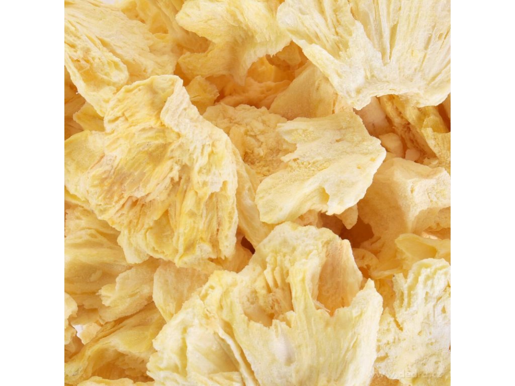 Ananasul liofilizat este o gustare ușoară și crocantă, cu o aromă intensă de fructe, care vă va încânta cu dulceața și aroma sa naturală, direct din plantațiile exotice. Datorită procesului de lipire, ananasul își păstrează valoarea nutritivă, culoarea și aroma tipică - fără adaos de zahăr sau conservanți.