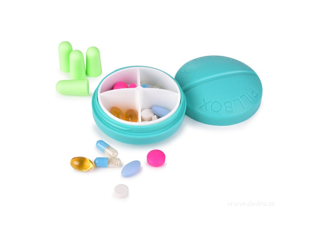 Kompaktná lekárnička so 4 priehradkami na úhľadné uloženie liekov a vitamínov. Balenie obsahuje 4 štuple do uší ako praktický bonus.