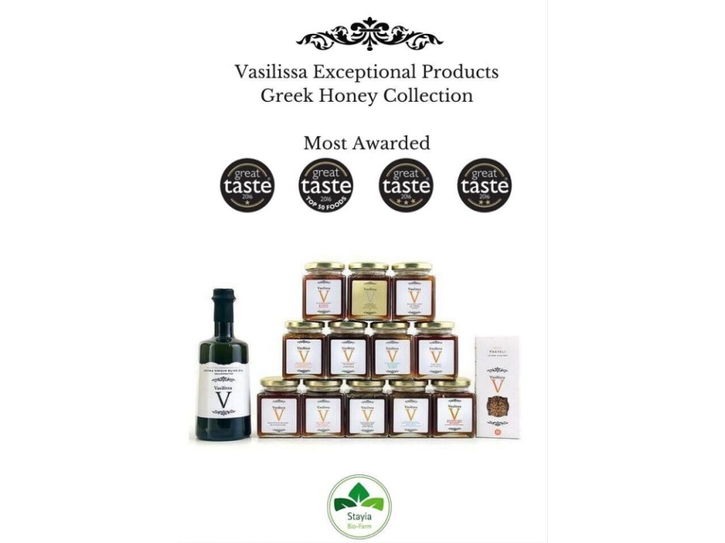 VASILISSA – kráľovná gréckych medov z Staya Farm – Medová kolekcia predstavuje skutočný poklad gréckej prírody. Grécky med je cenený pre svoju výnimočnú chuť, čistotu a preukázané blahodarné účinky, ktoré sú známe už od čias Hippokrata. Vyrába sa v prostredí bohatej horskej flóry, zaliatom intenzívnym gréckym slnkom a s minimálnym ľudským zásahom.