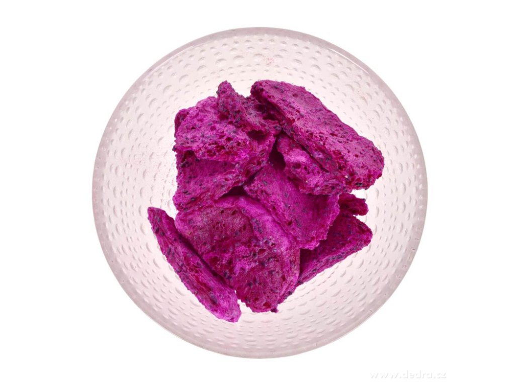 Liofilizirana pitaja (znana tudi kot zmajevo sadje) je izjemno nežen in rahlo sladek prigrizek, ki ohrani vse prednosti svežega sadja. Zahvaljujoč postopku liofilizacije ne izgubi svojega značilnega okusa, barve ali hranilne vrednosti – poleg tega pa pridobi lahko, hrustljavo obliko in daljši rok trajanja.