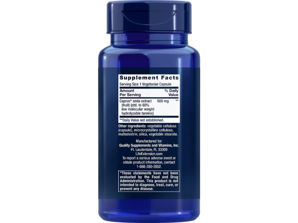 Capros® vodni ekstrakt amle (sadje) [standardno do 60 % hidrolizabilnih taninov z nizko molekulsko maso (300 mg)] 500 mg