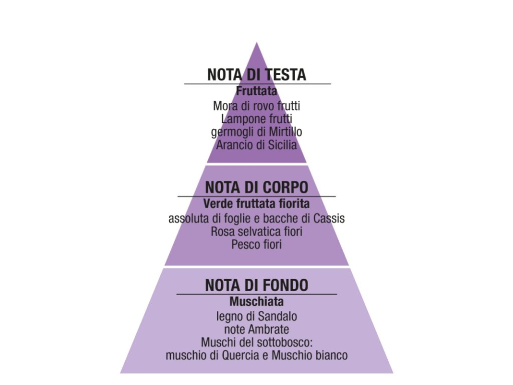 Ta živahna in igriva dišava se začne s svežimi in sočnimi notami sicilijanske pomaranče, obogatenimi s sadnimi akordi borovnic, robid in malin. Prehaja v peneče note listov in jagod črnega ribeza, ki se mešajo s toplimi in čutnimi severnimi mahovi in lišaji. Sestavo zaokroži nežen pridih sandalovine, ki ustvarja neustavljivo svežo in rahlo nagajivo mešanico. Ta parfumirana voda *združuje sadne in cvetlične vonjave*, ki vzbujajo čisto naravo in živa čustva.