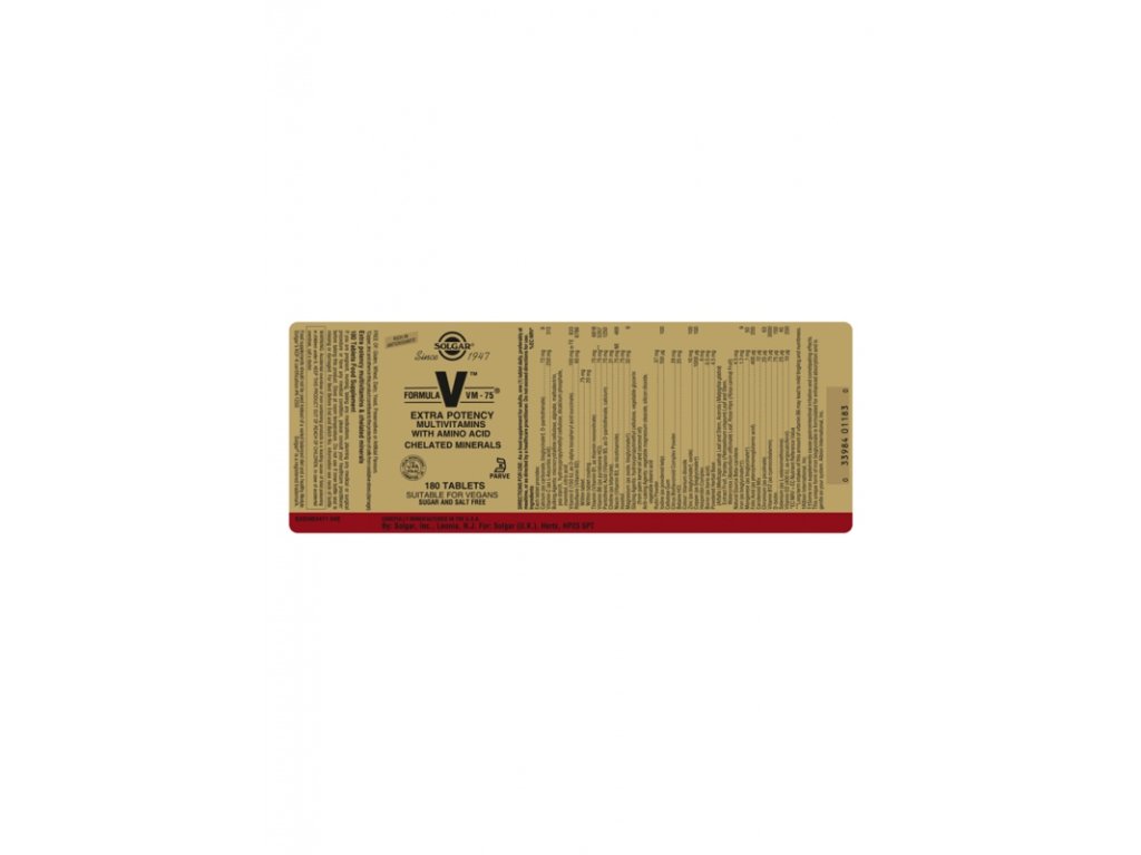 Solgarjeva formula VM-75 je multivitamin številka ena v industriji naravnih izdelkov. "75" pomeni, da VM 75 vsebuje 75 mg večine vitaminov skupine B. Decembra 2002 je revija HFB podelila nagrado za "najboljše prehransko dopolnilo". Veliko pakiranje s 180 tabletami.
