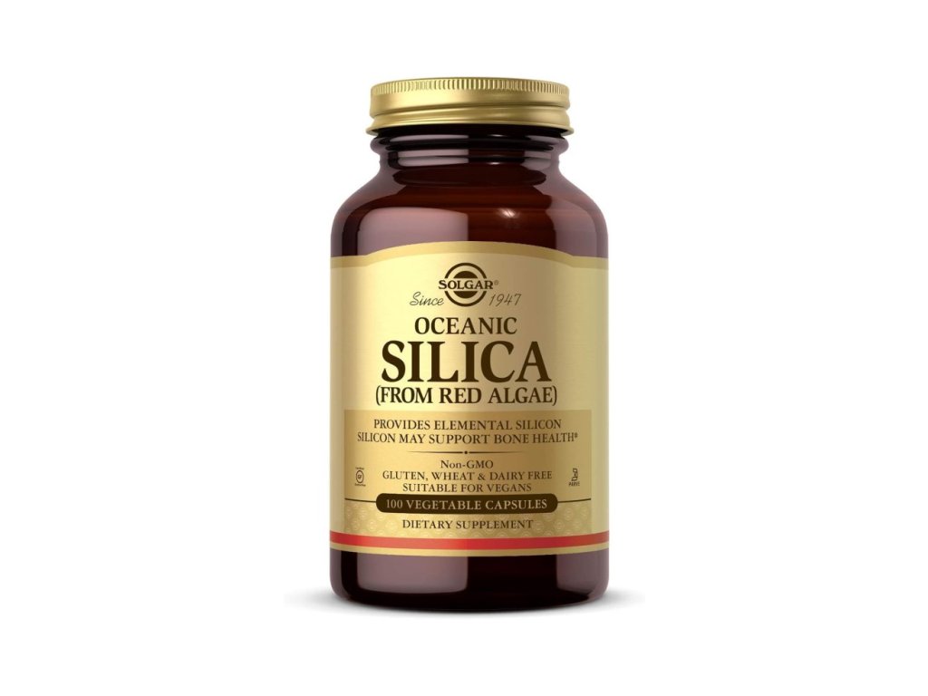 Solgar Oceanic Silica 25 mg je prehransko dopolnilo, ki vsebuje silicij, pridobljen iz rdeče morske alge Lithothamnion corallioides. Silicij je pomemben element v sledovih, ki ga naravno najdemo v nekaterih žitih in morskih sadežih. Povezan je s podporo zdravju kosti, hrustanca, kože, las in nohtov.