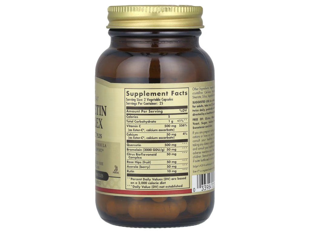 Solgar® Quercetin Complex vsebuje pomemben bioflavonoid kvercetin v sinergijski kombinaciji z Ester-C® Plus, ki zagotavlja edinstveno antioksidativno in imunsko podporo.