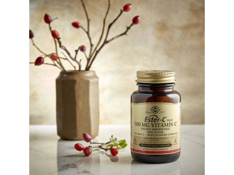 Solgar® Ester-C Plus 500 mg je pokročilá, šetrná forma vitamínu C s postupným uvolňováním a vysokou vstřebatelností.
