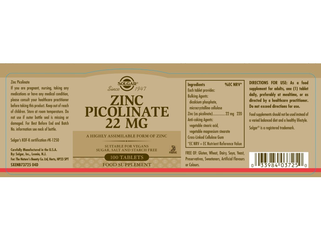Zinek (jako pikolinát zinečnatý) 22 mg (tj. 220%DDD)*,