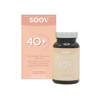 SOOV Women 40+ je přírodní multivitamin pro ženy po čtyřicítce, který podporuje vitalitu, hormonální rovnováhu, imunitu a zdraví kostí, kůže i vlasů.,...