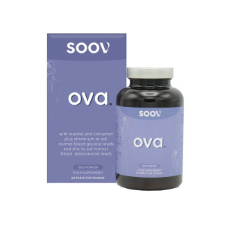 Soov Ova – přírodní směs s myo-inositolem, skořicí a chromem pro podporu hormonální rovnováhy a normální hladiny glukózy v krvi. Doplněk stravy pro že...