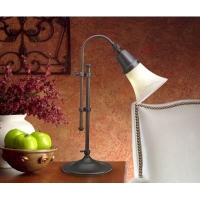 Jednoduchá elegantní lampa v sobě spojuje starožitný design s nejnovějšími technologiemi osvětlení. Za pomoci nastavitelného skleněného stínidla ji můžete při čtení či jiné práci namířit přesně tam, kam potřebujete.