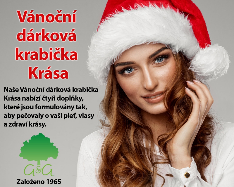 Naše Vánoční dárková krabička Krása nabízí čtyři doplňky, které jsou formulovány tak, aby pečovaly o vaši pleť, vlasy a zdraví krásy a zároveň přispívaly k normální funkci imunitního systému a normálnímu energetickému metabolismu.