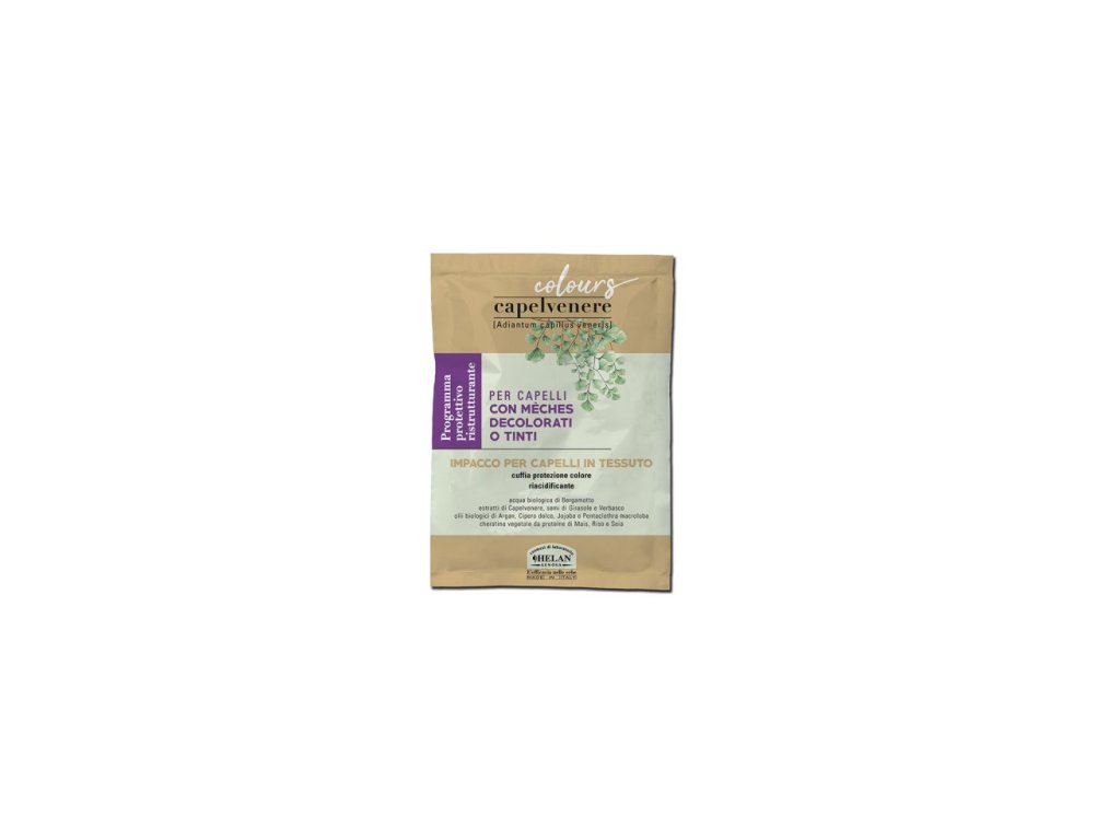 Vlasová maska v tkanině – reacidifikační čepice pro ochranu barvy je inovativní kúra určená pro první mytí po barvení permanentní barvou, ideálně s produkty Capelvenere Colours. Díky obsahu proteinů z kukuřice, rýže a sóji pomáhá vyrovnat intenzitu barvy a prodloužit její výdrž.