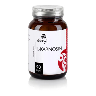 Aminokyselina L-karnosin ve veganských kapslích. 1 kapsle obsahuje 300 mg L-karnosinu.